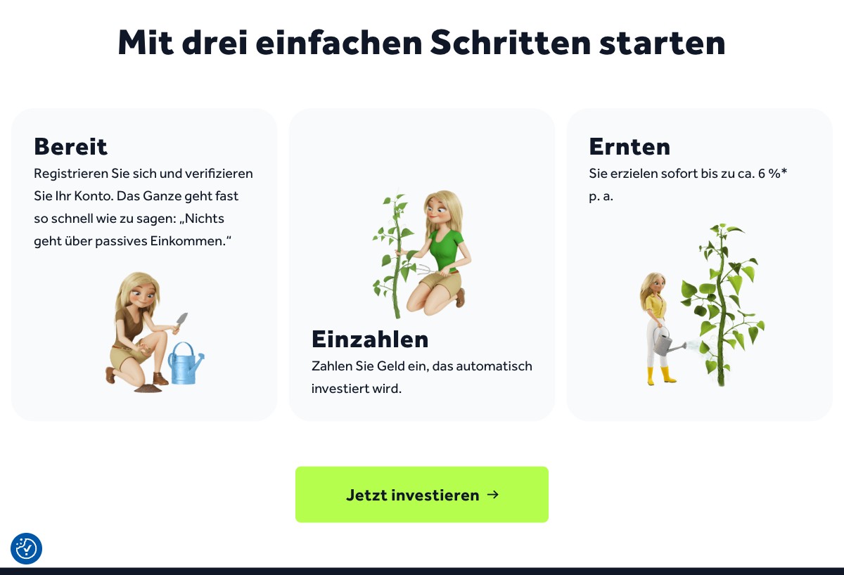 5€ Startbonus bei Investition von mindestens 50€ innerhalb von 30 Tagen.