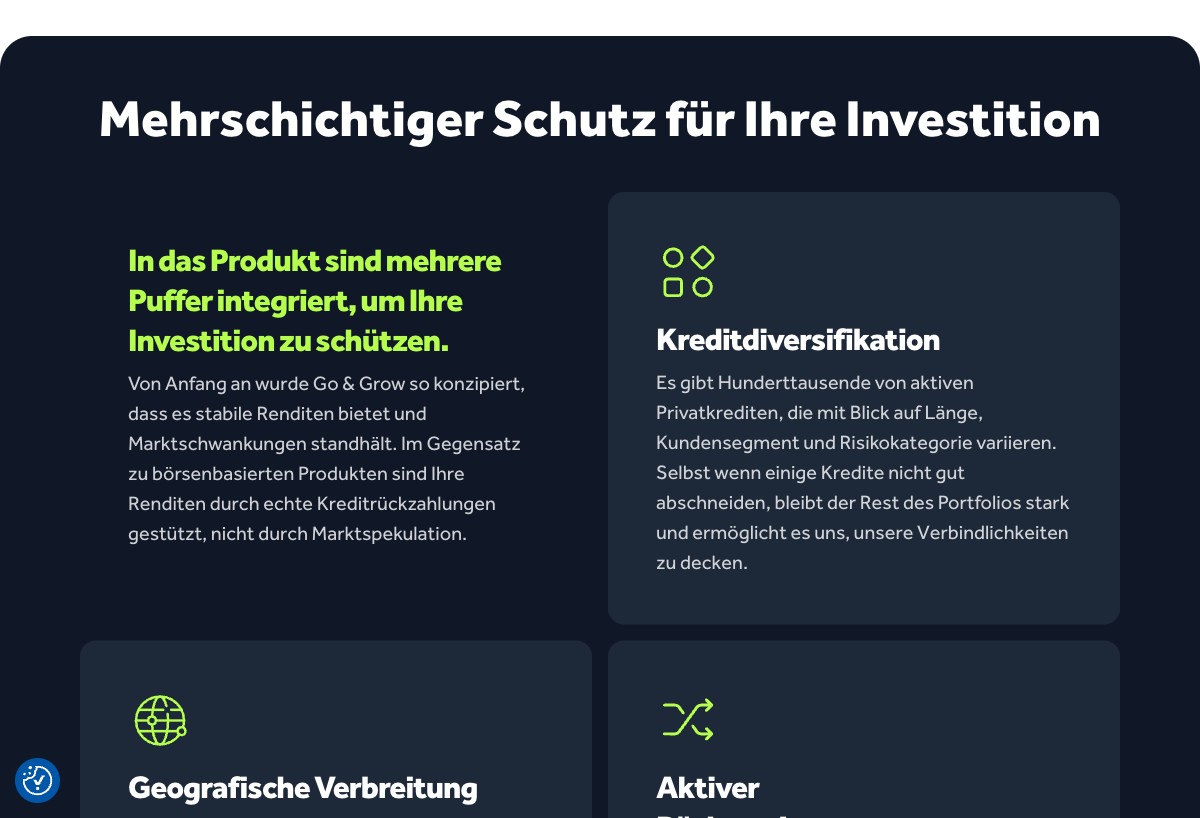 Die Risikoerklärung weist dich darauf hin, dass es sich bei Go & Grow nicht um ein Tagesgeld handelt, sondern um ein Investment in Konsumentenkredite. Es gibt keine Einlagensicherung und dein Kapital ist nicht garantiert. Diese Transparenz ist gut — lies die Erklärung wirklich durch, damit du weißt, worauf du dich einlässt.